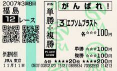 ・2007/11/11 福島12R T2000 2092 10着/10頭 55.0古川吉洋 3歳上500万(混)[指] 伊達特別