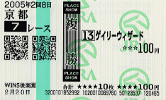 ・2005/02/20 京都07R D1400 1300 16着/16頭 55.0北村浩平 4歳500万[指]