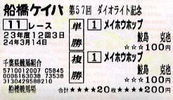 ・2006/12/07 船橋10R D1600 1405 01着/14頭 55.0繁田健一 C1級一 一陽特別