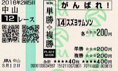 ・2016/03/12 中山12R D1200 1133 14着/16頭 55.0柴田善臣 4歳上500万[指]